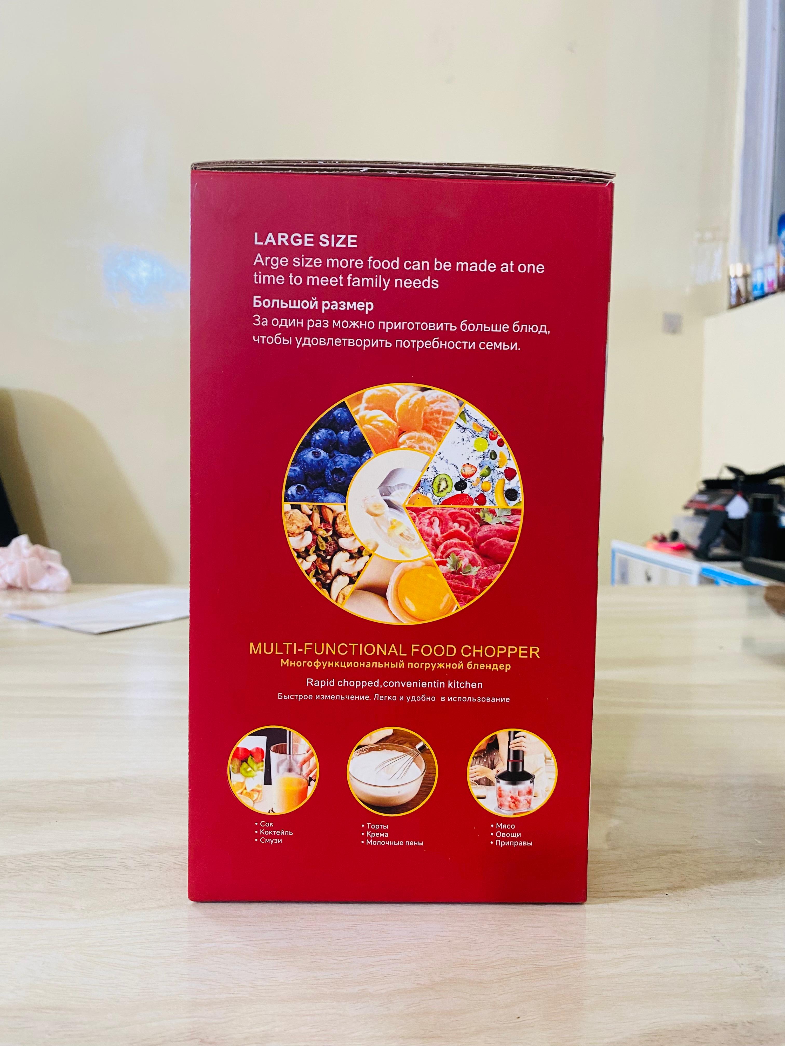 4 in 1 Hand Blender Set with 800Watts turbo speed option Stainless Steel Immersion Blender with Egg beater and Milk Frother500ml Chopper and 600ml Beaker with Lid included Juicer MachinePlastic jug material with 500-1000ml capacityPerfect for food preparation in small kitchensHigh-quality product from RAF brand• Single speed• 4 in 1 Hand Blender Set with 800Watts turbo speed option• Stainless Steel Immersion Blender with Egg beater and Milk Frother• 500ml Chopper and 600ml Beaker with Lid included• Juicer Machine• Plastic jug material with 500-1000ml capacity• Perfect for food preparation in small kitchens• High-quality product from RAF brand• Single speed